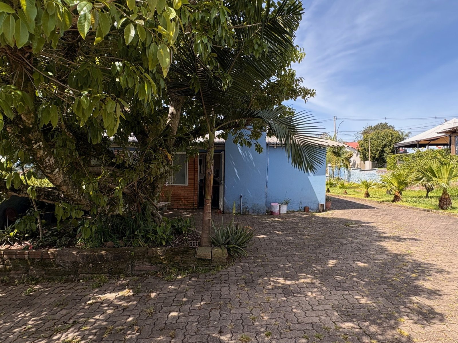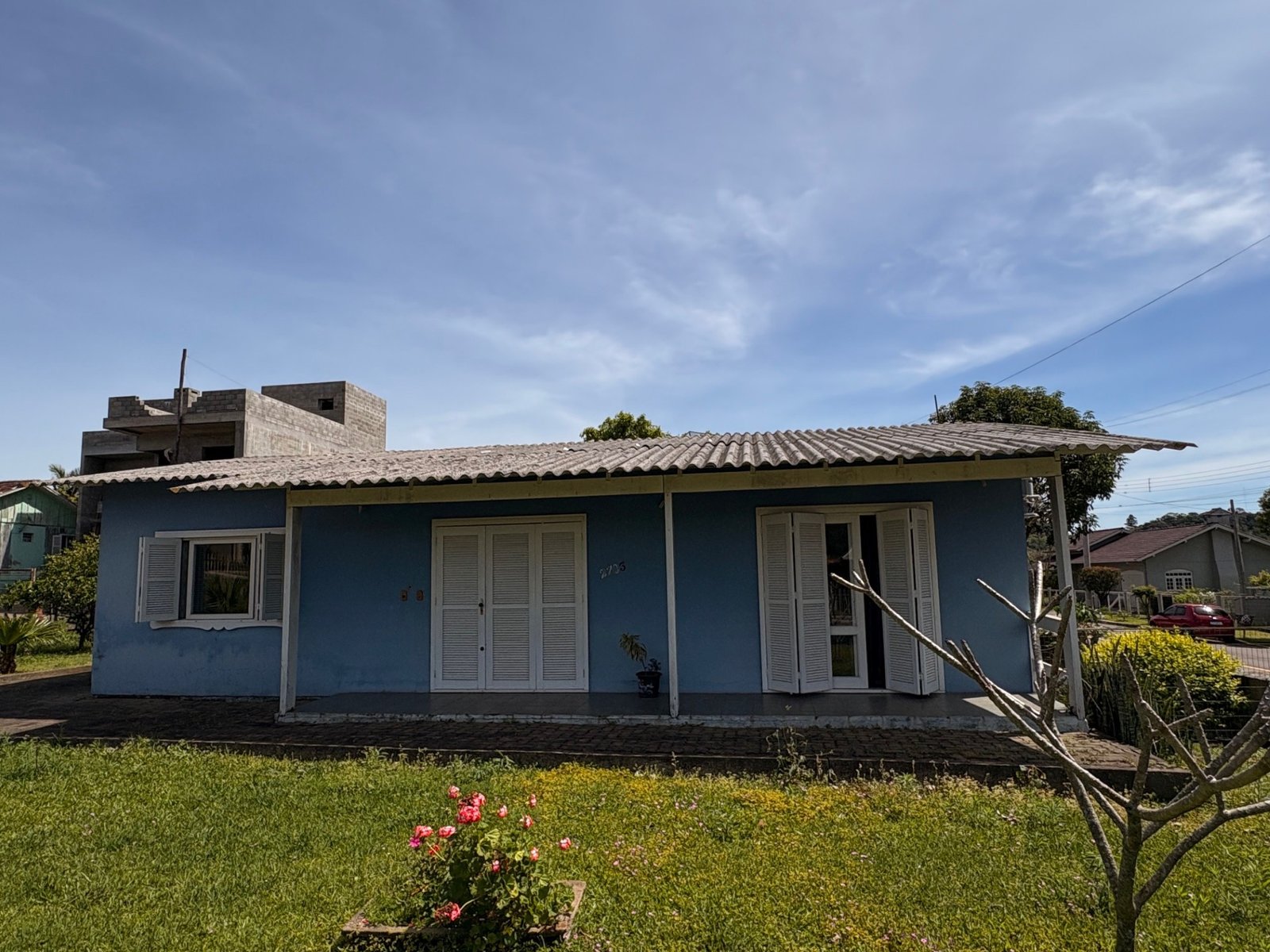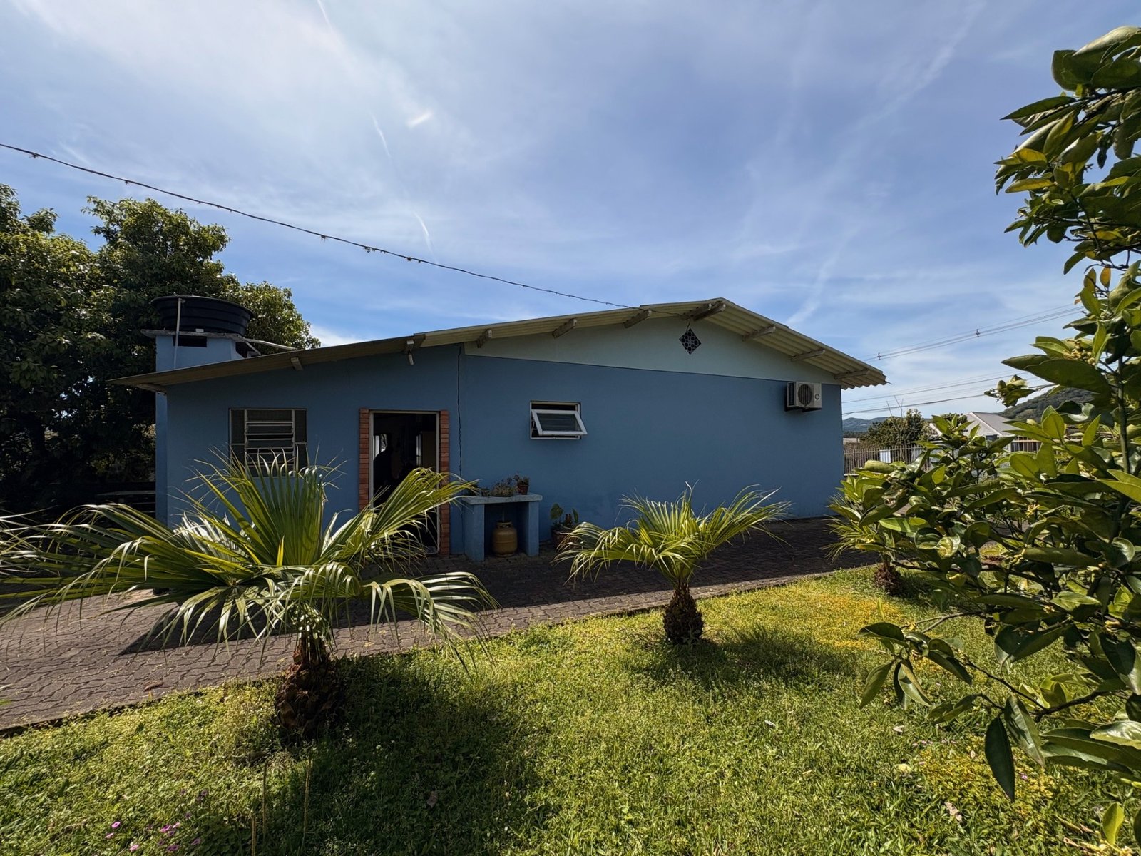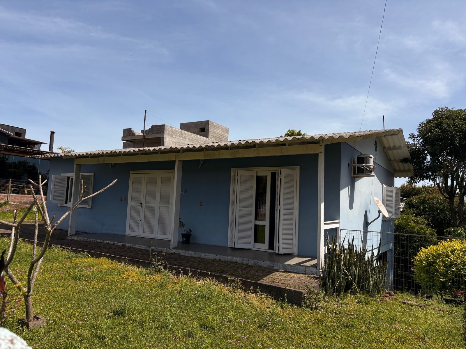 Casa possui 141,46 m², plana e em alvenaria, terreno com 957,91 m², possui três dormitórios, um banheiro, sala de estar, cozinha, área de serviço, quiosque com garagem e banheiro e na parte externa conta com amplo pátio com horta.
