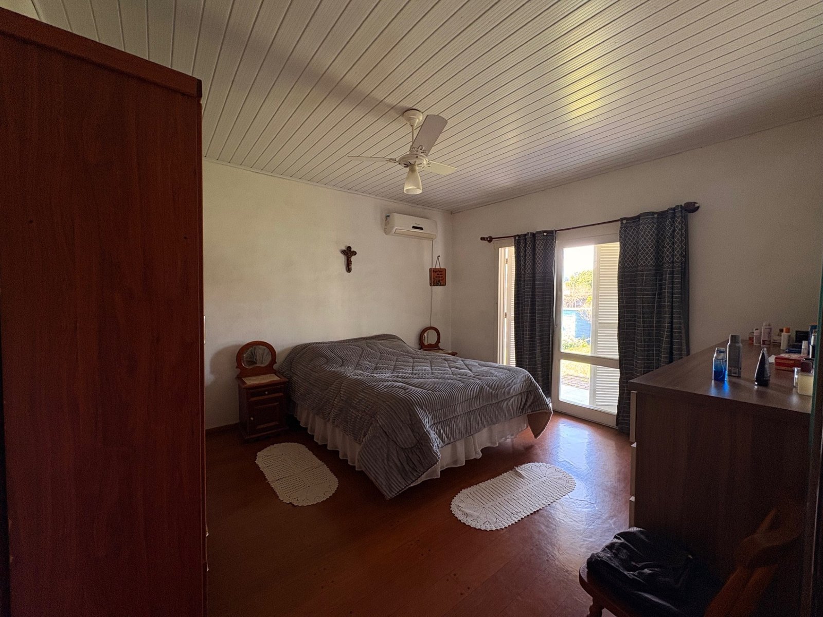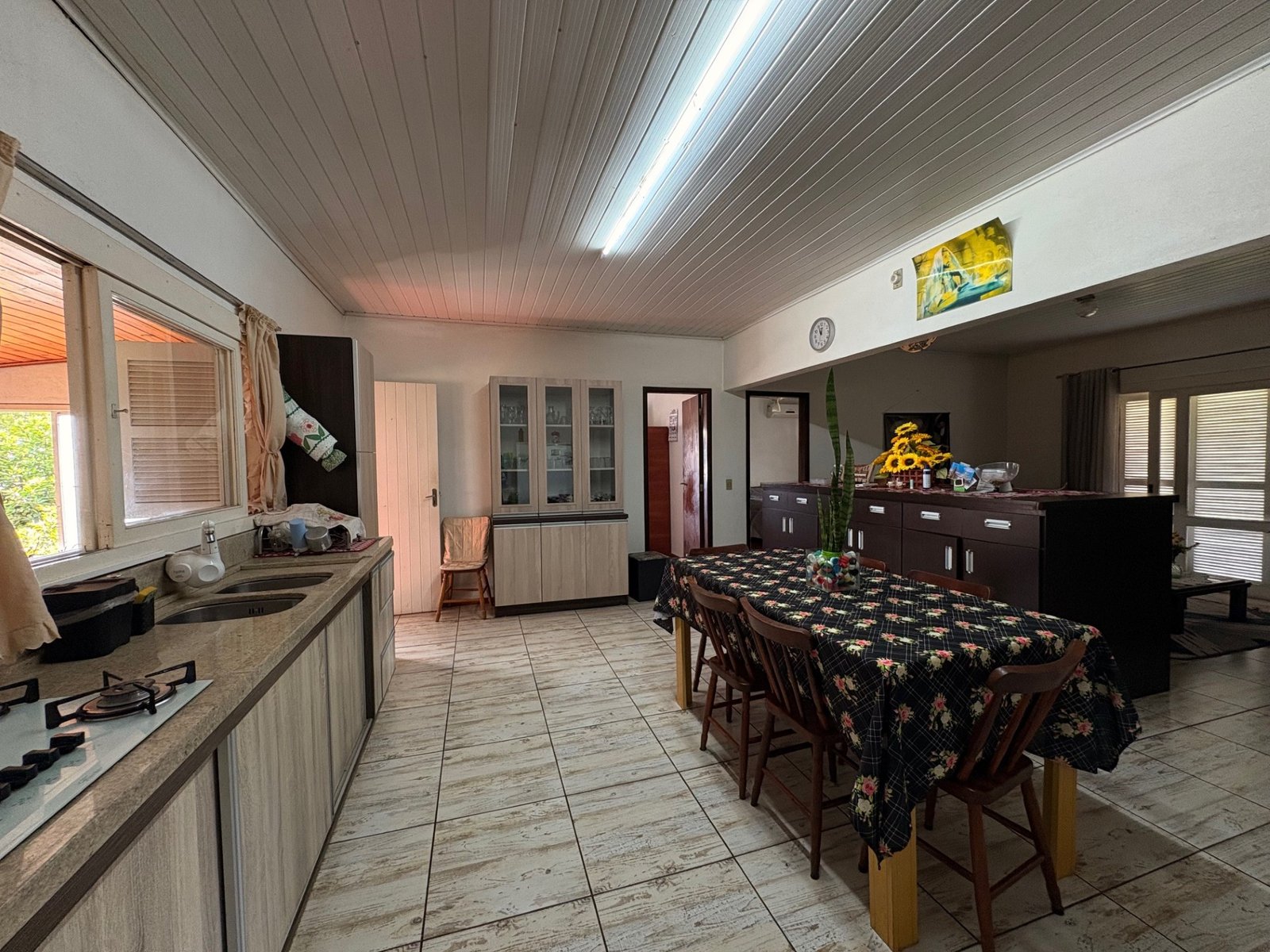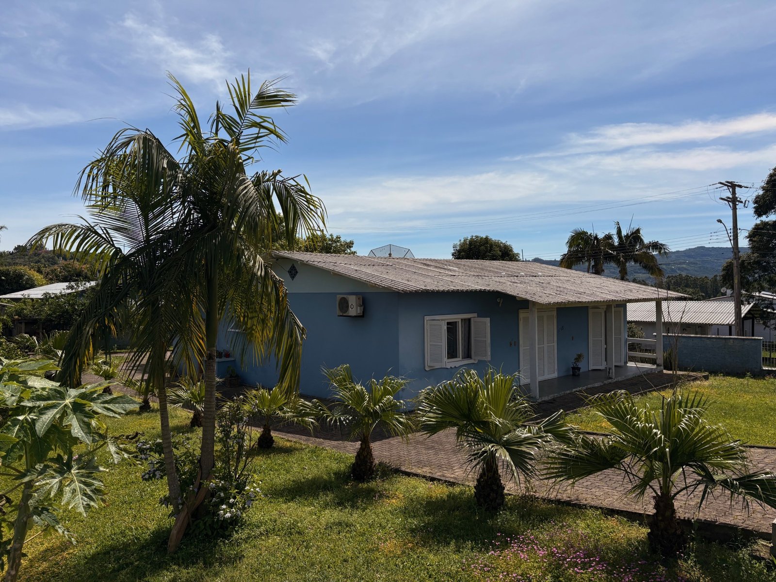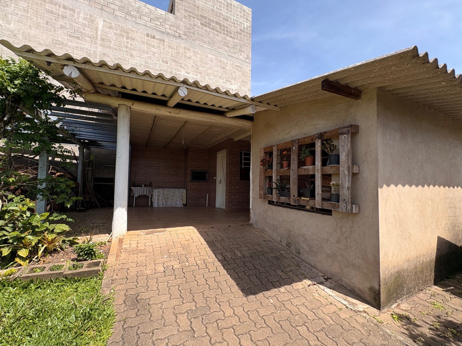Casa possui 141,46 m², plana e em alvenaria, terreno com 957,91 m², possui três dormitórios, um banheiro, sala de estar, cozinha, área de serviço, quiosque com garagem e banheiro e na parte externa conta com amplo pátio com horta.