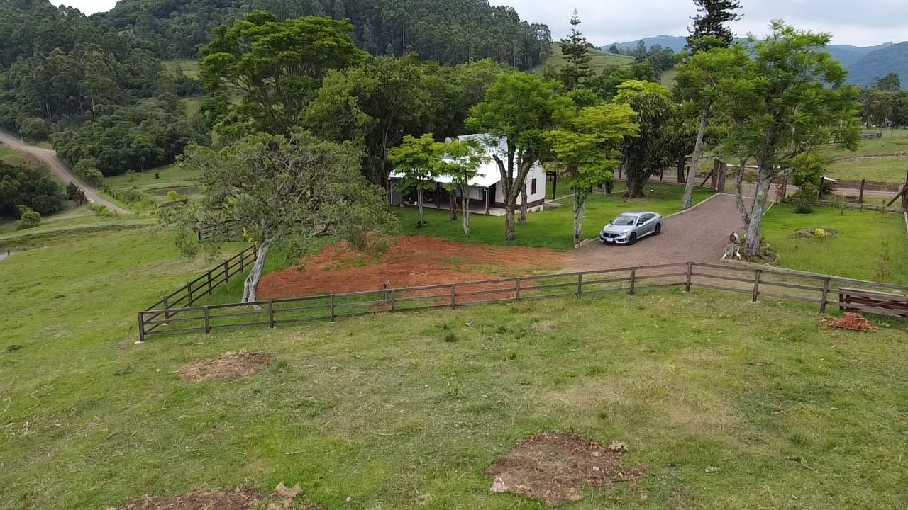 Com área de 4,2 hectares possui casa principal com três dormitórios, banheiro e sala e a outra casa com cozinha, churrasqueira, lavandeira e varanda.