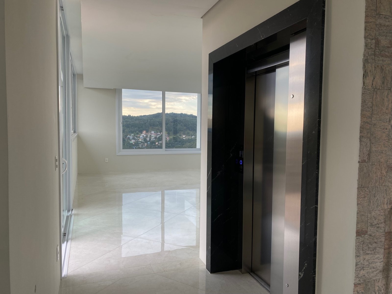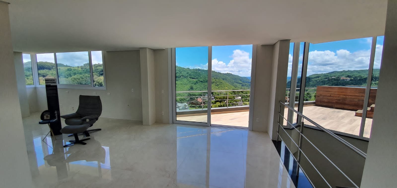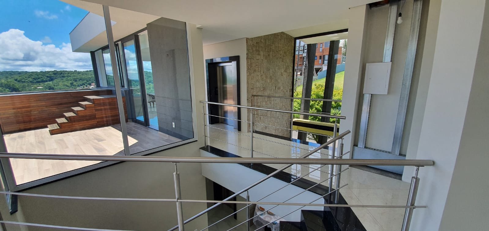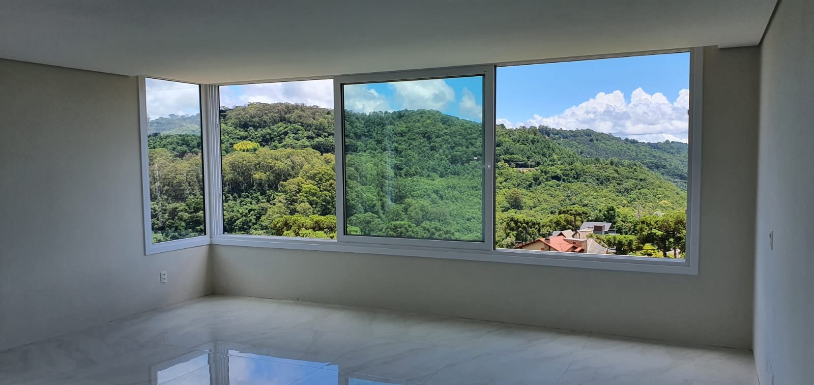 DETALHES CONSTRUTIVOS: Esquadrias pretas SCHEIN com vidro duplo, porcelanato PORTOBELLO em todos os ambientes, teto rebaixado com gesso, esperas para calefação e ar condicionado em todos os ambientes. Elevador Thyssen Krupp instalado e piscina com hidromassagem, borda infinita e iluminação. Todos os ambientes com vista panorâmica para o vale.