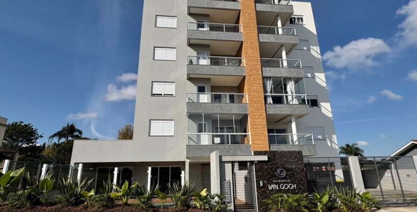 Residencial Van Gogh localizado no bairro Vista Alegre, apartamento 202 com 100,33 m² dois dormitórios, sendo uma suíte com dois banheiros, sacada ampla com churrasqueira e dois box de garagem.