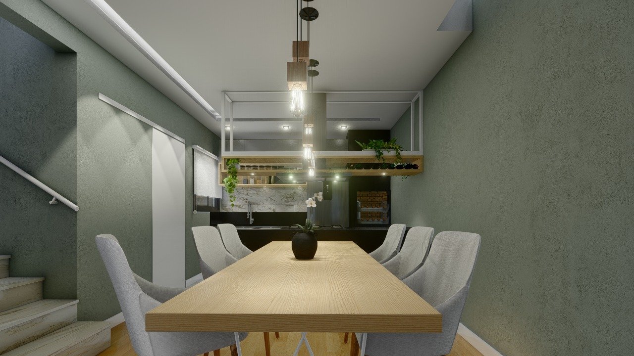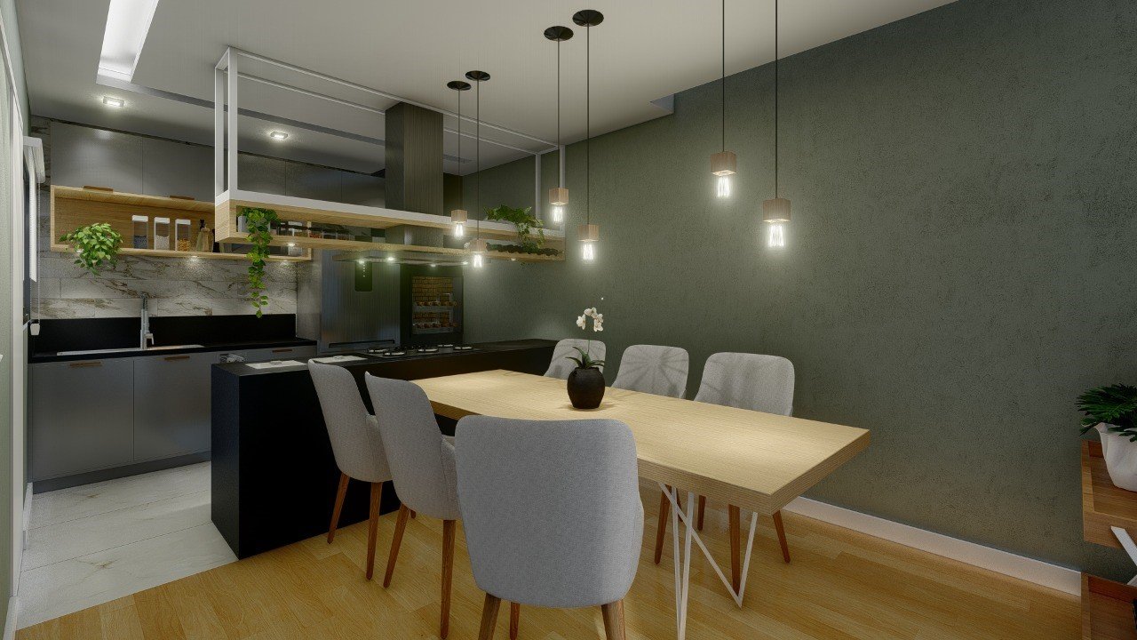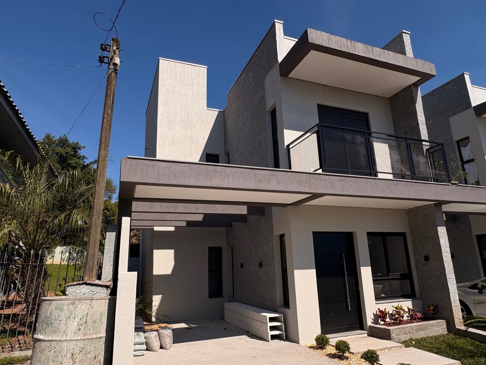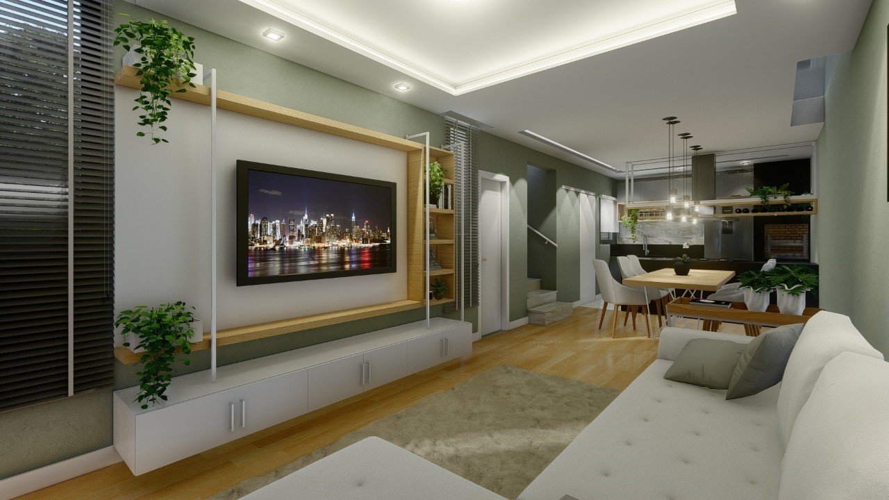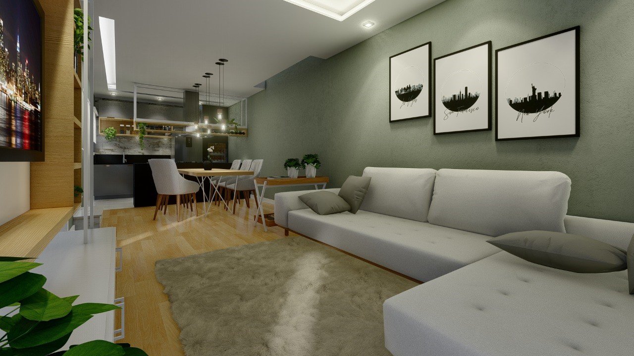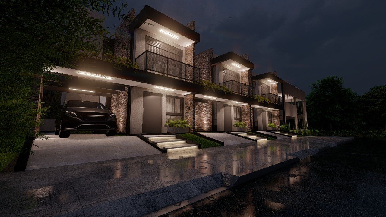 Projeto em construção no bairro Bom Jardim, 2 sobrados com 108 m² privativos, compostos por duas suítes no segundo pavimento, sala de estar, jantar e cozinha com churrasqueira integrados, área de serviço e despensa no térreo.