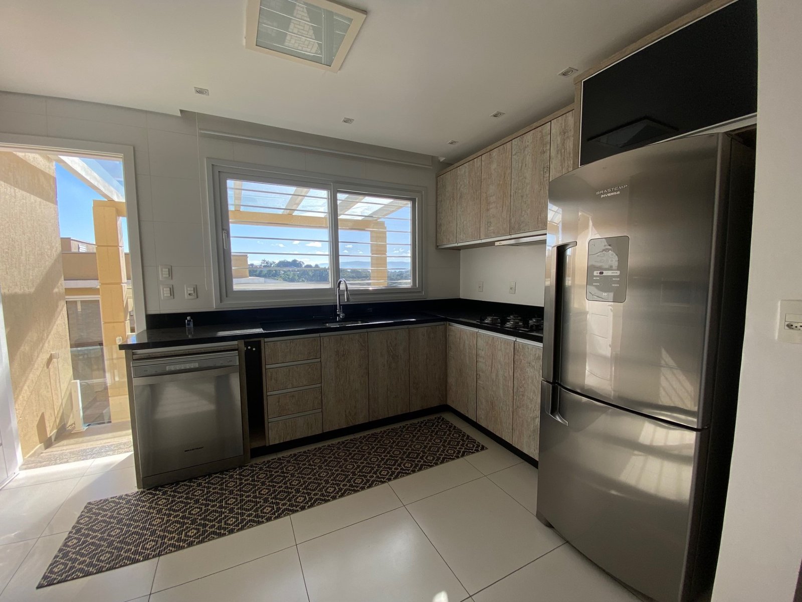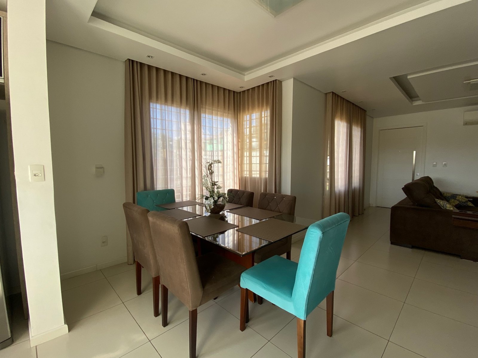 Com 176 m² conta com três dormitórios, sendo uma suíte, três banheiros, lareira, cozinha e sala integrados, acabamentos em gesso, água quente, porcelanato, laje.