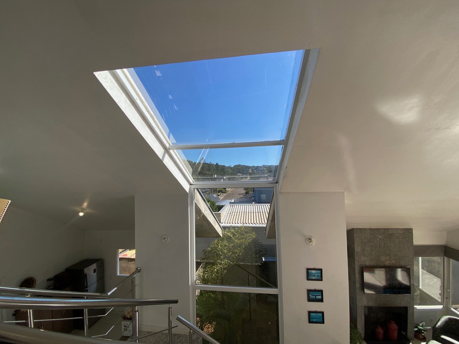 Casa conta com pé direito alto e duplo com amplas aberturas, tornando o imóvel muito arejado e iluminado.